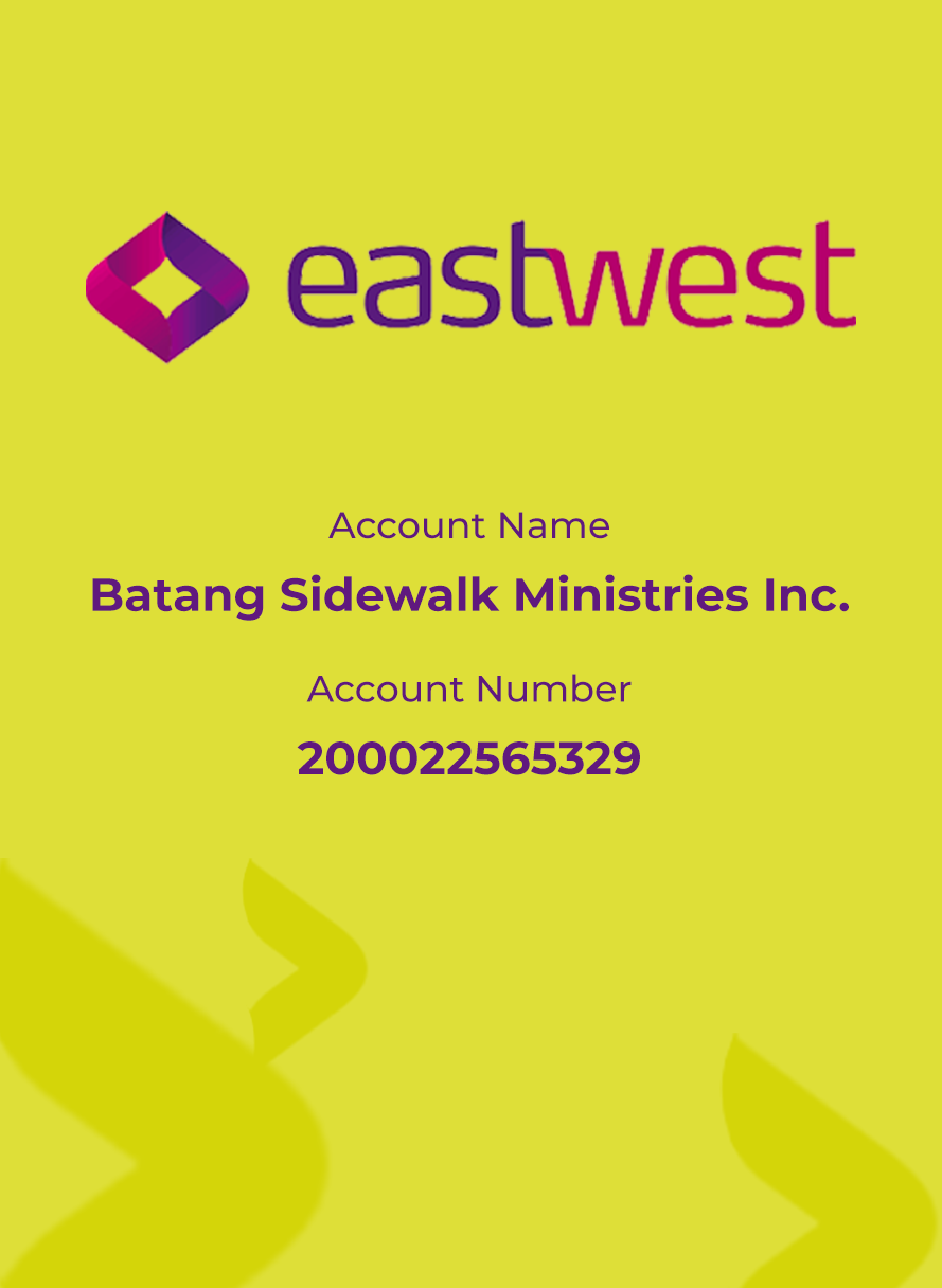 donate Bank of the Philippine Island (BPI)Checking AccountAccount Number: 3741-8934-27Swift Code: BOPIPHMMXXX Gcash QR Code East West Bank ← BackThank you for your response. ✨ Name(required) Warning Email(required) Warning Comment(required) Warning Warning. Submit Δ